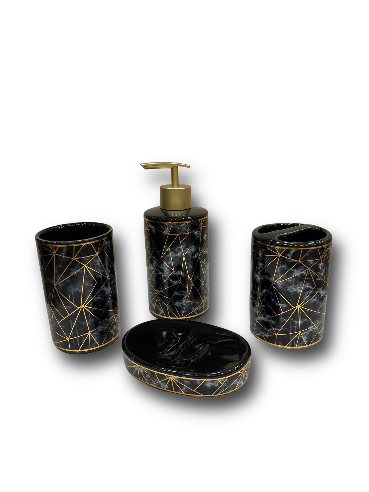 ¡Descubre la elegancia y el lujo en cada detalle de nuestro set para baño! 🛁✨ Este exclusivo conjunto de 4 piezas incluye: